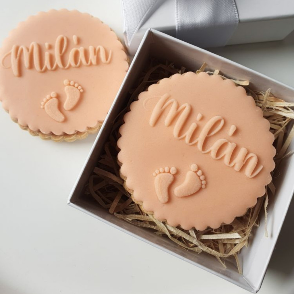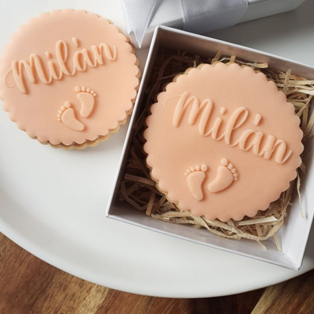 Egyedi kekszpecsét a baba nevével, születési dátumával vagy korával. Tökéletes ajándék babaváróra, keresztelőre vagy az első szülinapra.