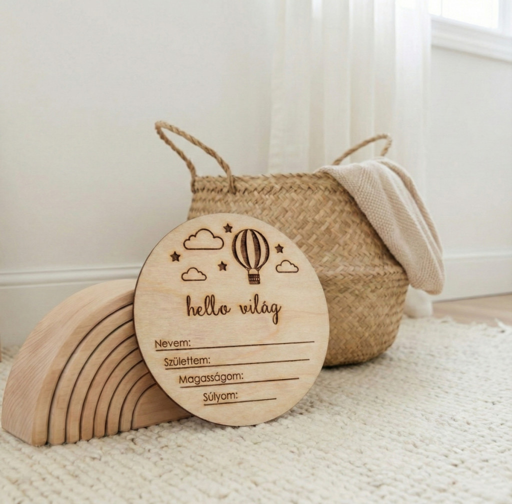 Ez a natúr, fából készült születési értesítő korong kettős célt szolgál: egyrészt egy elengedhetetlen babafotózási kellék, amivel stílusosan tudathatod a világgal a pici érkezését, másrészt egy kézzel fogható emlék, amely évek múlva is büszkén hirdeti gyermeked születési adatait.