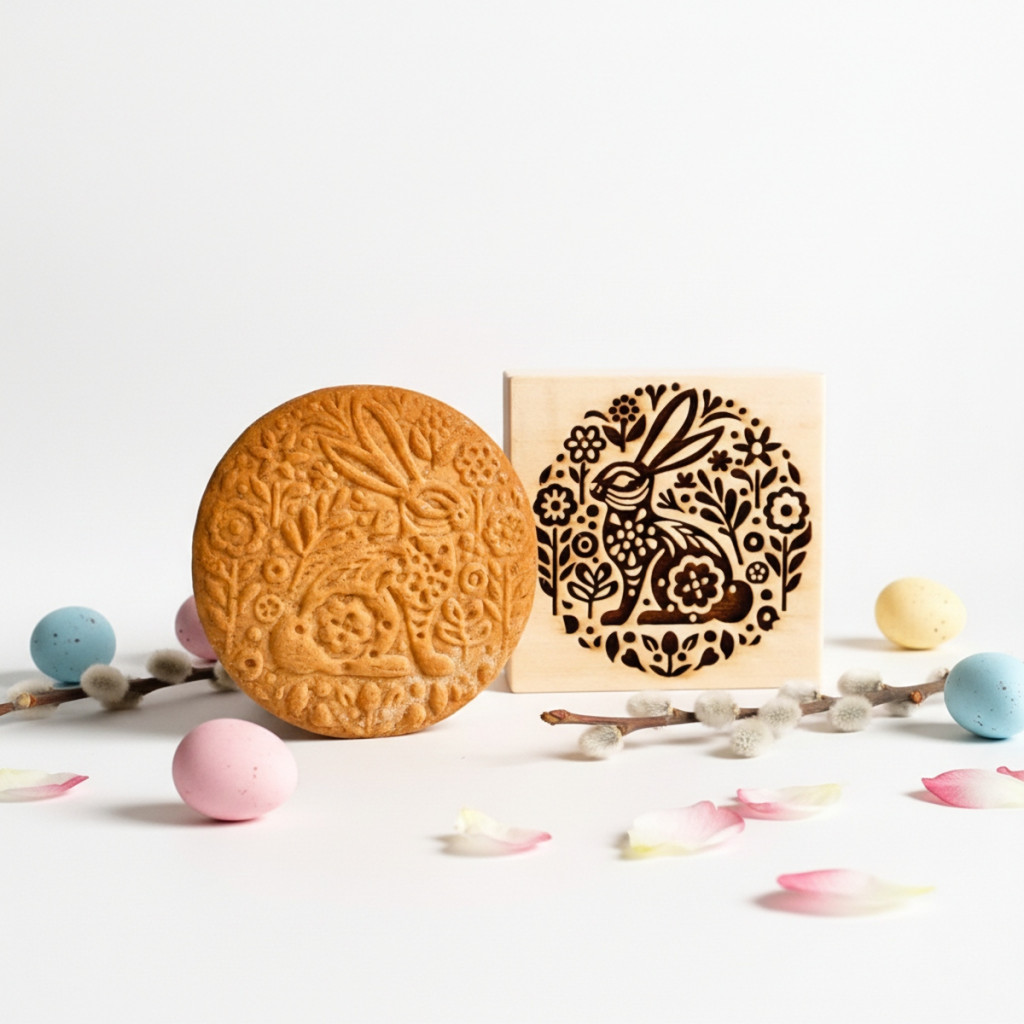 Ez a praktikus húsvéti sütipecsét gyors és esztétikus megoldás, ha a hagyományos díszítési technikák helyett valami másra vágysz. A folk stílusú nyúl, méh és virág motívumokkal díszített kekszekkel a tavaszi asztal valódi ékességeit készítheted el.