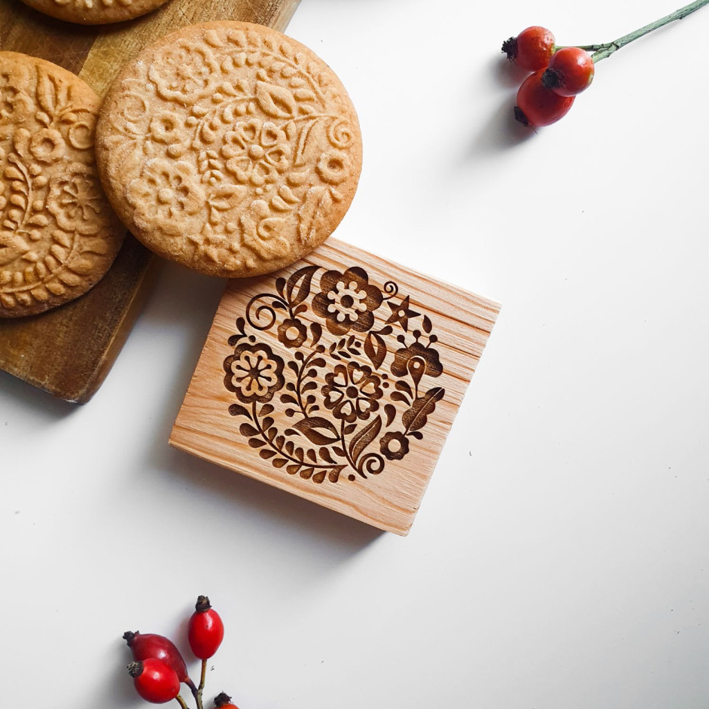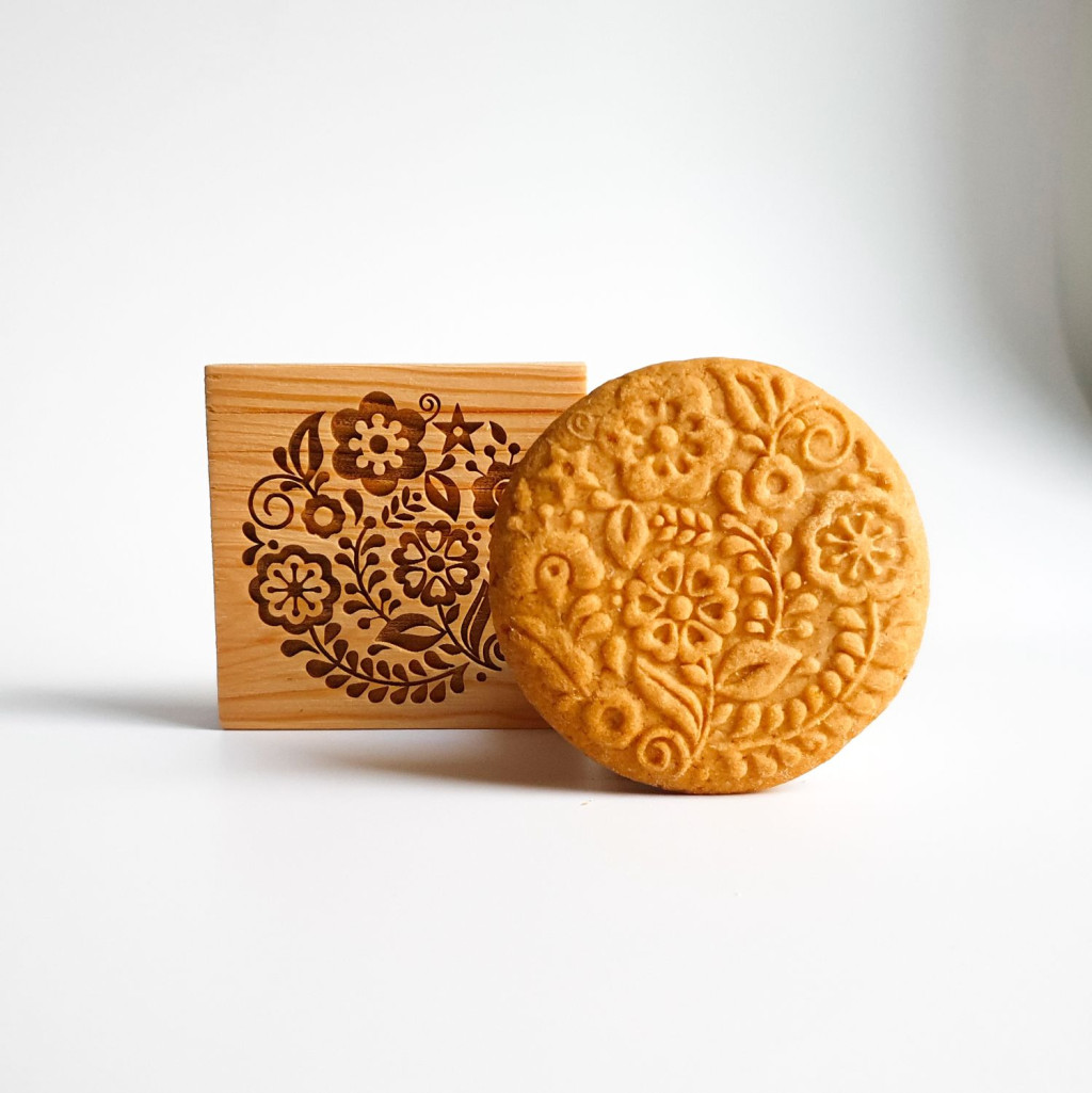 folklór virágos mintás nézeskalács és fából készült sütipecsét