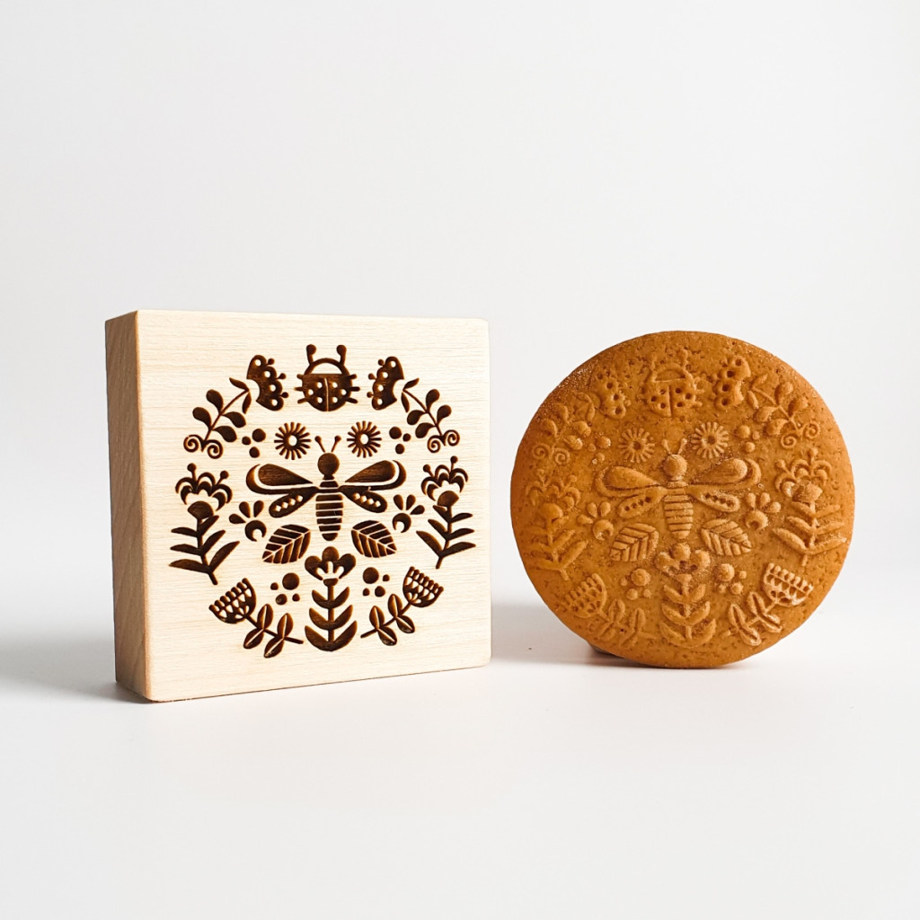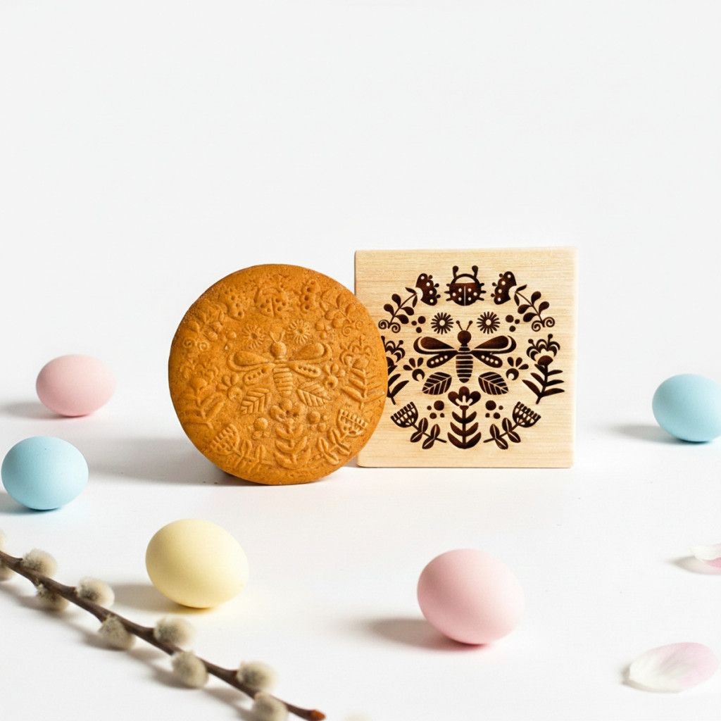 Ez a praktikus sütipecsét gyors és esztétikus megoldás, ha a hagyományos díszítési technikák helyett valami másra vágysz. A folk stílusú nyúl, méh és virág motívumokkal díszített kekszekkel a tavaszi asztal valódi ékességeit készítheted el.