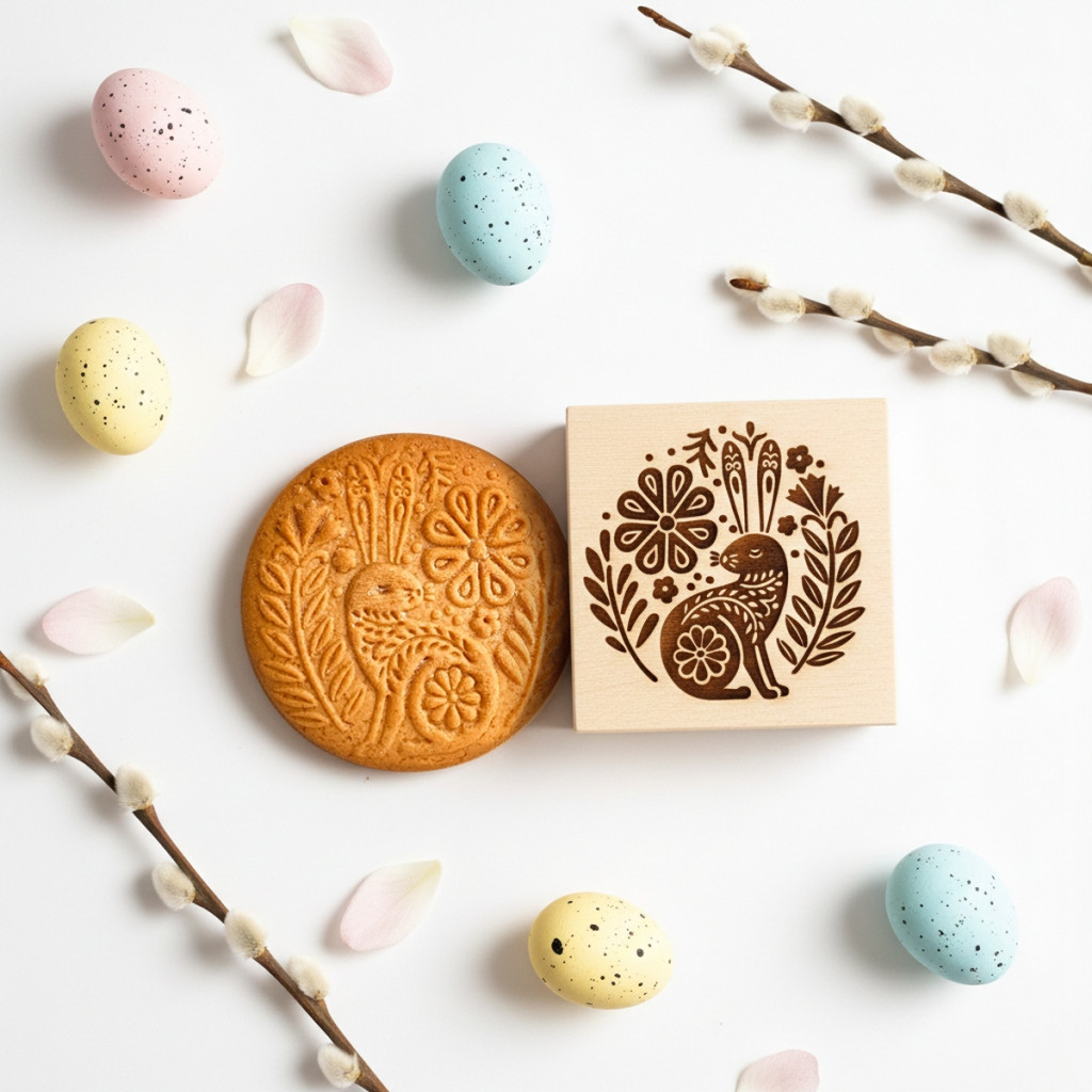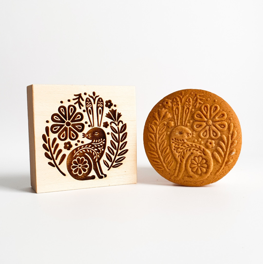 Ez a praktikus húsvéti sütipecsét gyors és esztétikus megoldás, ha a hagyományos díszítési technikák helyett valami másra vágysz. A folk stílusú nyúl, méh és virág motívumokkal díszített kekszekkel a tavaszi asztal valódi ékességeit készítheted el.