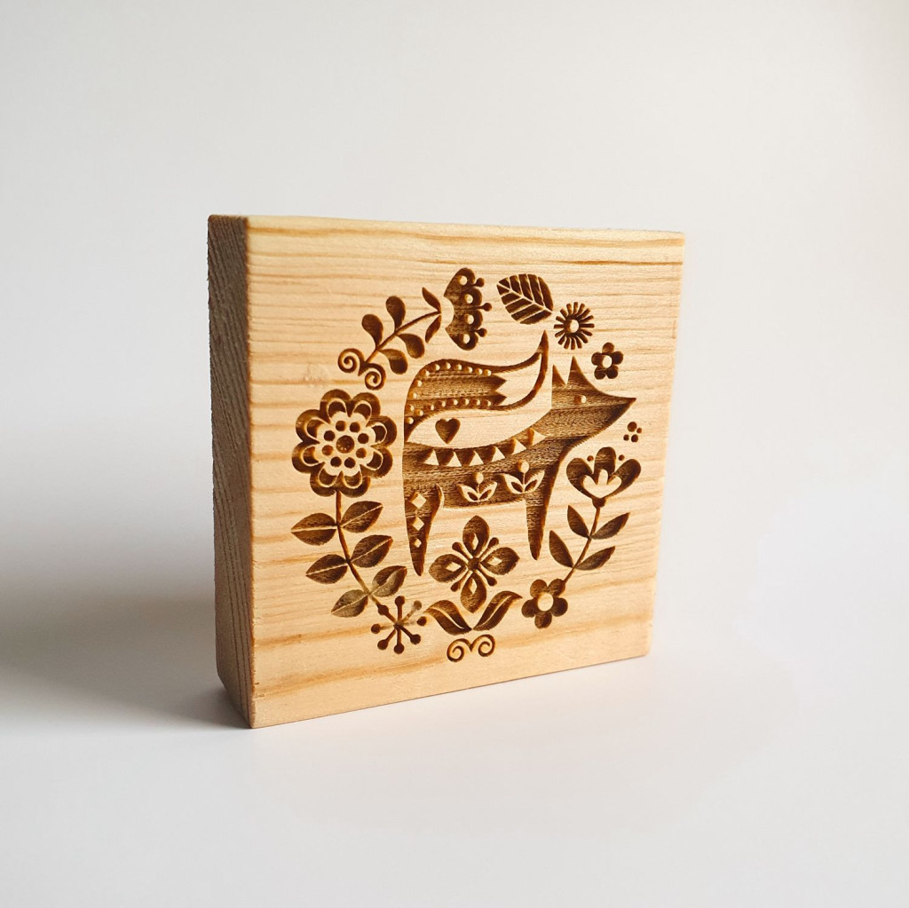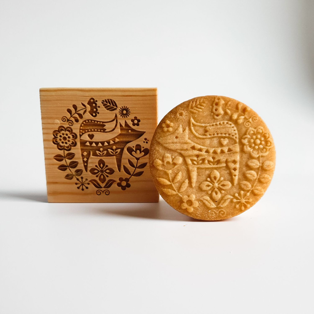 fából készült kekszpecsét róka mintával
